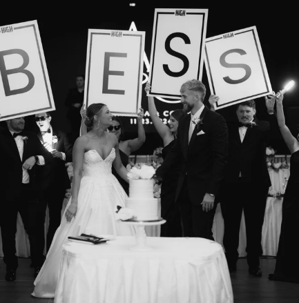 Designed to make your wedding unforgettable! Imagine your wedding party entering the room with bold, custom letters spelling your new last name, paired with a glamorous, bottle-service-inspired Marquee sign and LED wands. This high-energy enhancement sets the stage for an unforgettable celebration, creating Instagram-worthy moments during introductions and electrifying energy on the dance floor.